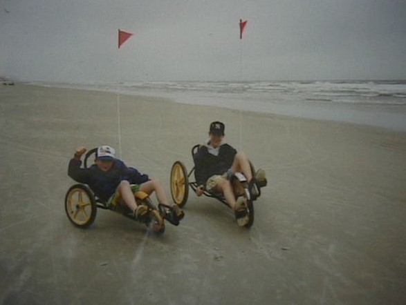riding banana bikes on Daytona beach during our vacation with Pop and
